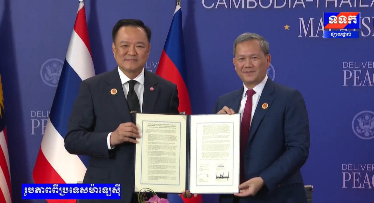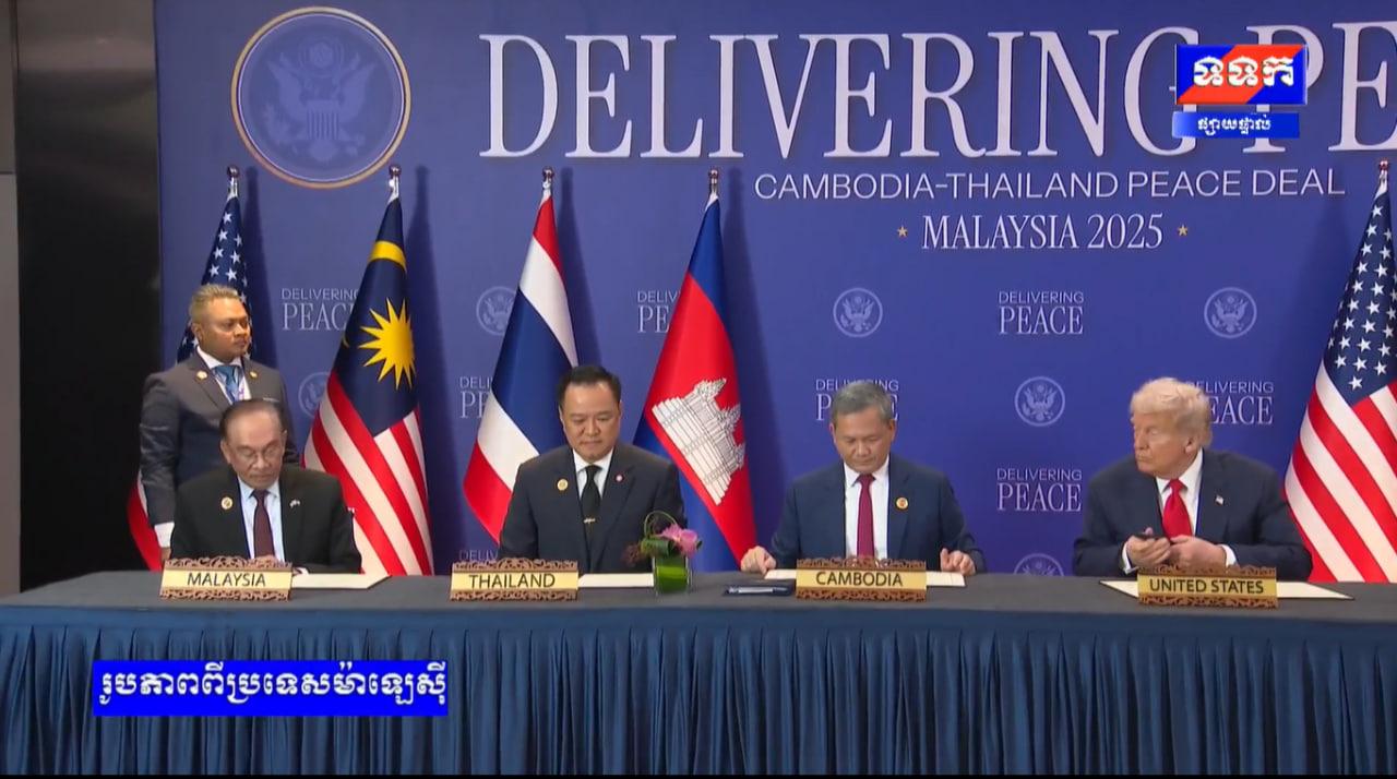 កម្ពុជា-ថៃ ចុះហត្ថលេខាលើឯកសារ កិច្ចព្រមព្រៀងសន្តិភាពរវាងប្រទេសទាំងពីរ ក្រោមអធិបតីភាព លោក ដូណាល់ ត្រាំ