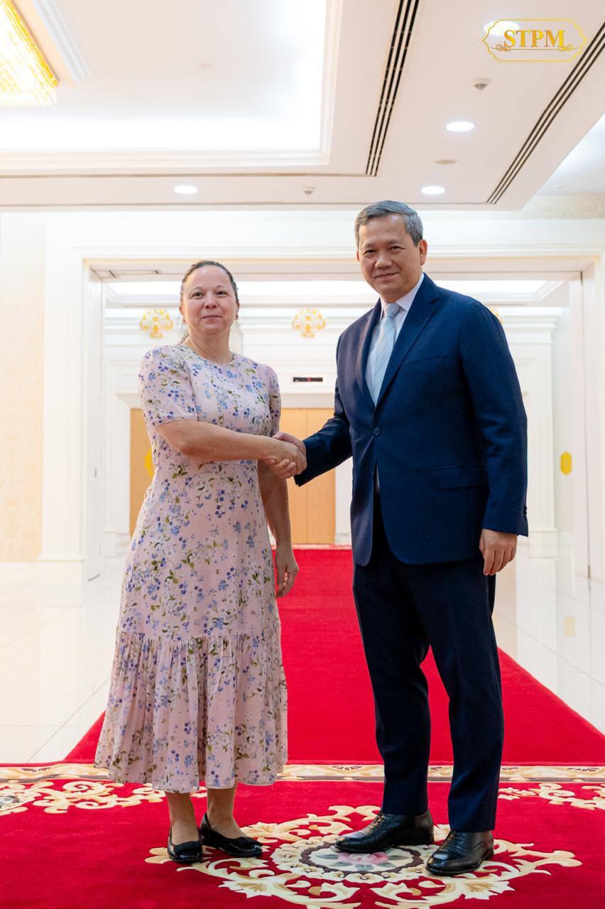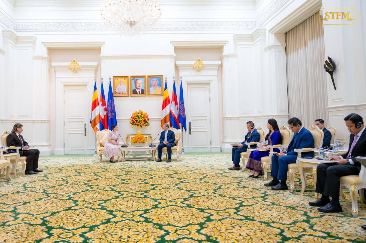 សម្ដេចបវរធិបតី និងលោកស្រី ឯកអគ្គរដ្ឋទូត បានពិភាក្សាលើការបន្តជំរុញ និងពង្រីកកិច្ចសហប្រតិបត្តិការរវាងប្រទេសទាំងពីរលើវិស័យសំខាន់ៗ មានជាអាទិ៍៖ អប់រំ, សុខាភិបាល, សន្តិសុខ និងការពារជាតិ, កសិកម្ម, ទេសចរណ៍, ហេដ្ឋារចនាសម្ព័ន្ធ និងបច្ចេកវិទ្យា។ បន្ថែមលើនេះ, សម្តេចបវរធិបតី និងលោកស្រី បានឯកភាពក្នុងការលើកកម្ពស់ឱ្យមានការភ្ជាប់ទំនាក់ទំនងរវាងវិស័យឯកជននៃប្រទេសទាំងពីរ ដើម្បីបង្កើនកាលានុវត្តភាពបន្ថែមទៀតក្នុងការជំរុញដល់ការវិនិយោគ៕