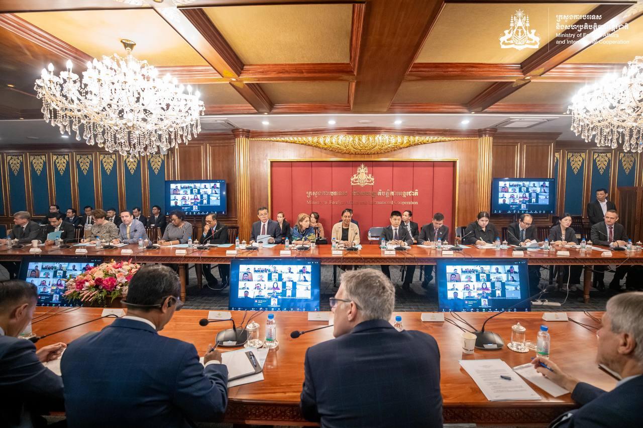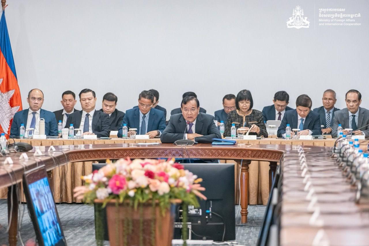 ការបញ្ជាក់សាជាថ្មីរបស់ លោកឧបនាយករដ្ឋមន្ត្រី ប្រាក់ សុខុន នាឱកាសអញ្ជើញដឹកនាំការធ្វើបទបង្ហាញស្តីពីការវិវត្តថ្មីៗនៃបញ្ហាជម្លោះព្រំដែនកម្ពុជា-ថៃ ដោយផ្តោត ជាពិសេសលើការបន្តគោរពបទឈប់បាញ់របស់កម្ពុជា ការប្រកាន់ខ្ជាប់នូវការដោះស្រាយបញ្ហាព្រំដែនដោយសន្តិវិធី និងផ្អែកលើច្បាប់ និងការបោសសំអាតមីនមនុស្សធម៌នៅតំបន់ព្រំដែន។ បទបង្ហាញនេះមានការចូលរួមពីសមាជិកអង្គទូតបរទេសចំនួន ៣៩ រូប ដែលមាននិវេសនដ្ឋាននៅរាជធានីភ្នំពេញ នាថ្ងៃទី ៨ ខែ វិច្ឆិកា ឆ្នាំ២០២៥ នៅទីស្តីការក្រសួង។