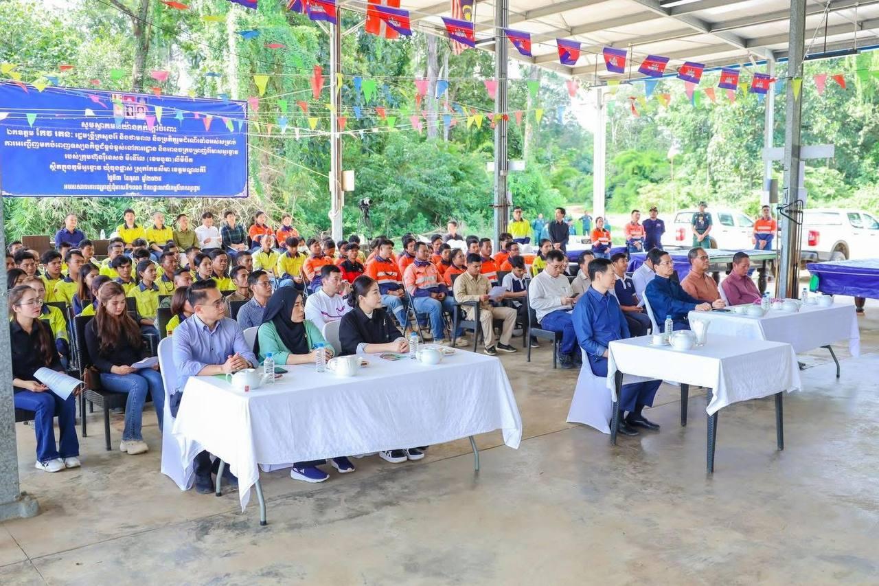 មណ្ឌលគិរី ៖ លោក កែវ រតនៈ រដ្ឋមន្ដ្រីក្រសួងរ៉ែ និងថាមពល បានបង្ហាញនូវស្នាមញញឹមនៃក្តីសង្ឃឹម និងការពេញចិត្តរបស់វិស្វករ និងបងប្អូនកម្មករ កម្មការិនីខ្មែរ នៅការដ្ឋានរ៉ែមាសខ្នាតអន្តរជាតិនៅអូក្វាវ ខេត្តមណ្ឌលគិរី។