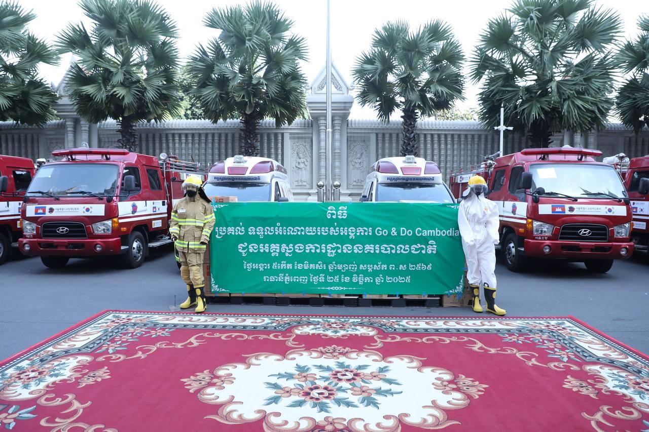 នាយឧត្តមសេនីយ៍ ស ថេត សង្ឃឹមថា រដ្ឋាភិបាលកូរ៉េ នឹងបន្តផ្ដល់ជំនួយឯកសណ្ឋានការពារសារធាតុគីមីបន្ថែមទៀត សម្រាប់កិច្ចអន្តរាគមន៍បាញ់ពន្លត់អគ្គិភ័យ